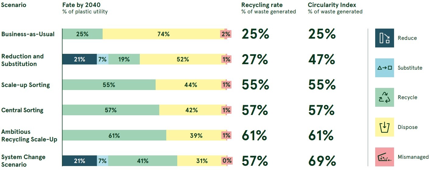 Plastic waste fate, recycling rates, and circularity index under different scenarios