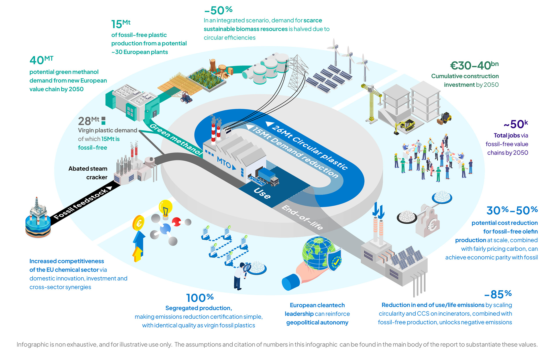 Scaling up fossil-free plastics can attract substantial investment in European manufacturing, generate jobs, and accelerate the development of net-zero value chains