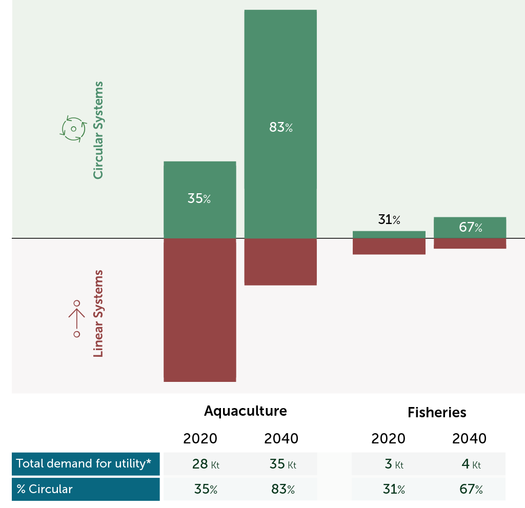 Through the application of circularity levers the Fisheries & Aquaculture sector can reach 81% circularity by 2040