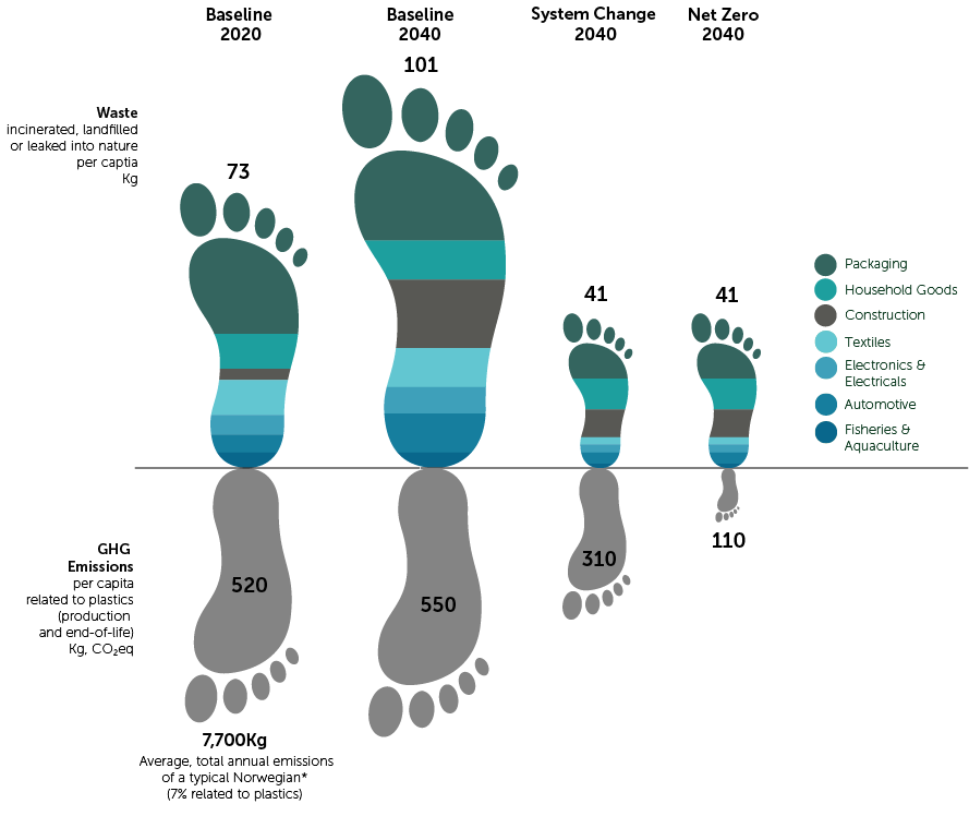 The yearly Norwegian per capita plastic disposal footprint has to reduce to 41kg per year to get on a net-zero pathway