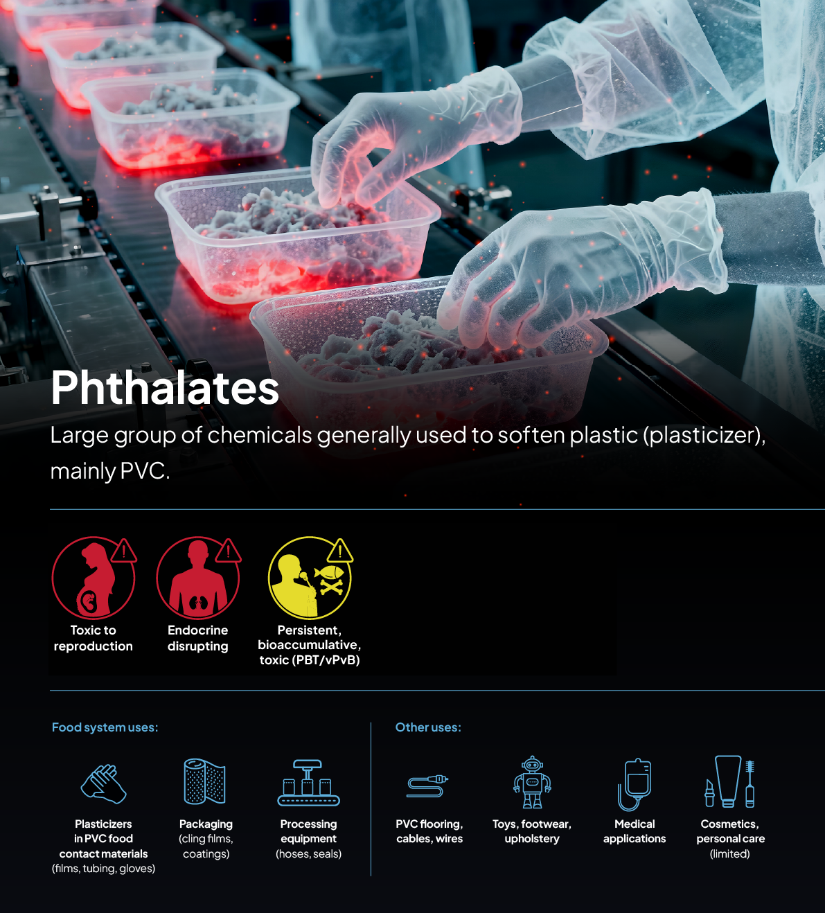 Invisible Ingredients provides the most comprehensive global assessment to date of how four major chemical groups—phthalates, bisphenols, pesticides, and PFAS—affect human health, ecosystems, and economic stability through the global food system. It finds that without a timely and coordinated phase-out, these chemicals will continue to drive significant harm to health and fertility, damage ecosystems, and erode long-term economic resilience.
