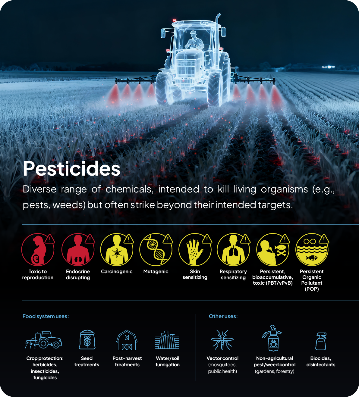 Achieving drastic reductions in toxic exposure across our food system and beyond requires more than incremental measures. The challenge is twofold. On the one hand are unmanaged hazards: substances whose health and environmental harms are already well documented, but where action lags behind the available evidence. On the other hand are unknown hazards: the thousands of substances in circulation that have not been adequately assessed for safety.